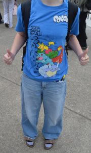 a graphic T- shirt is a casual shirt that features a printed image, design, logo, or text. These shirts can show off someone’s favorite band, a funny quote, an iconic cartoon, or even a political stance. They’re like wearable billboards for personality. In the featured image to the side it shows Dylan Ferris wearing one. Dylan was sporting a blue shirt with pokemon art printed on it. Its bright, eye catching and, shows a lot about Dylan’s interests without having to say a word.